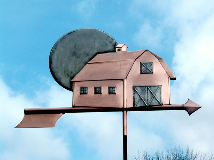 As with all of the weathervanes here, this Barn With Moon Weathervane was custom made by hand on request,